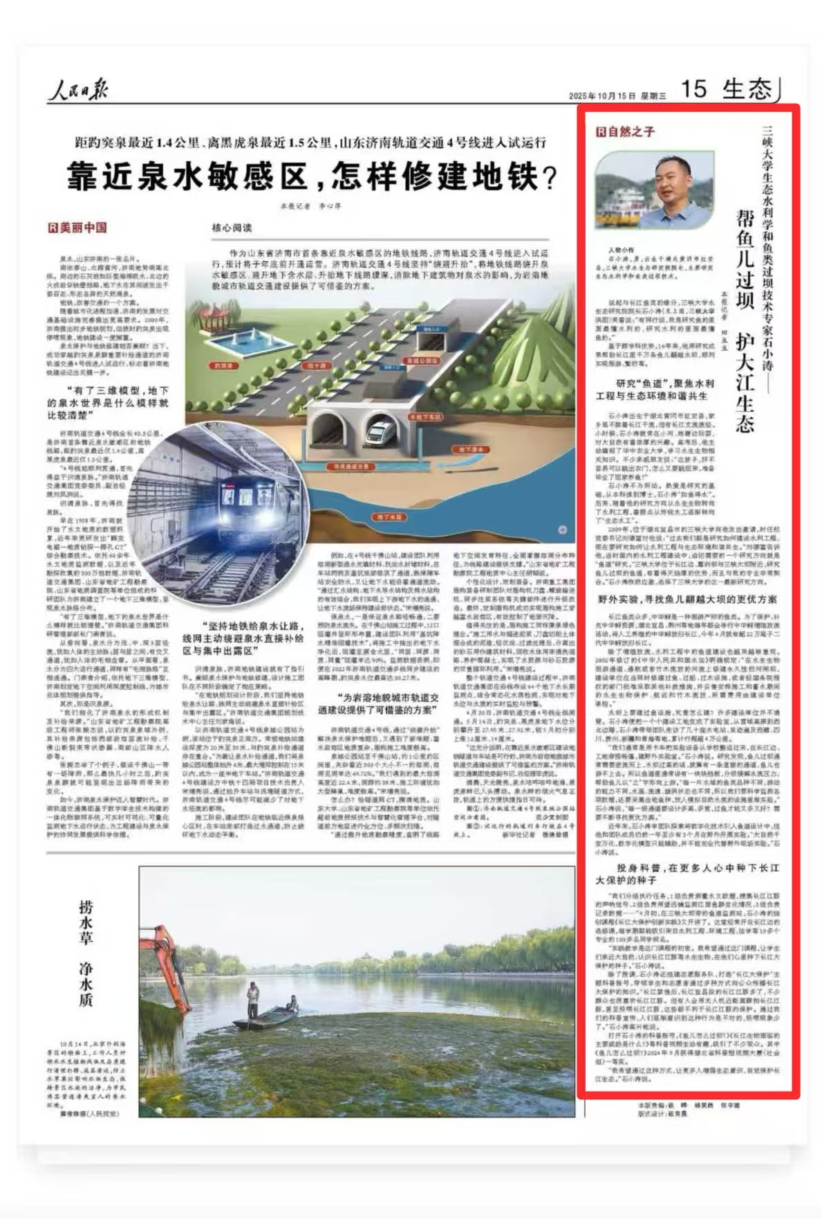 石小涛不为所动。热爱是研究的基础,从本科读到博士,石小涛“如鱼得水”。后来,随着他的研究方向从水生生物转向了水利工程,着眼点从传统水工逐渐转向了“生态水工”。